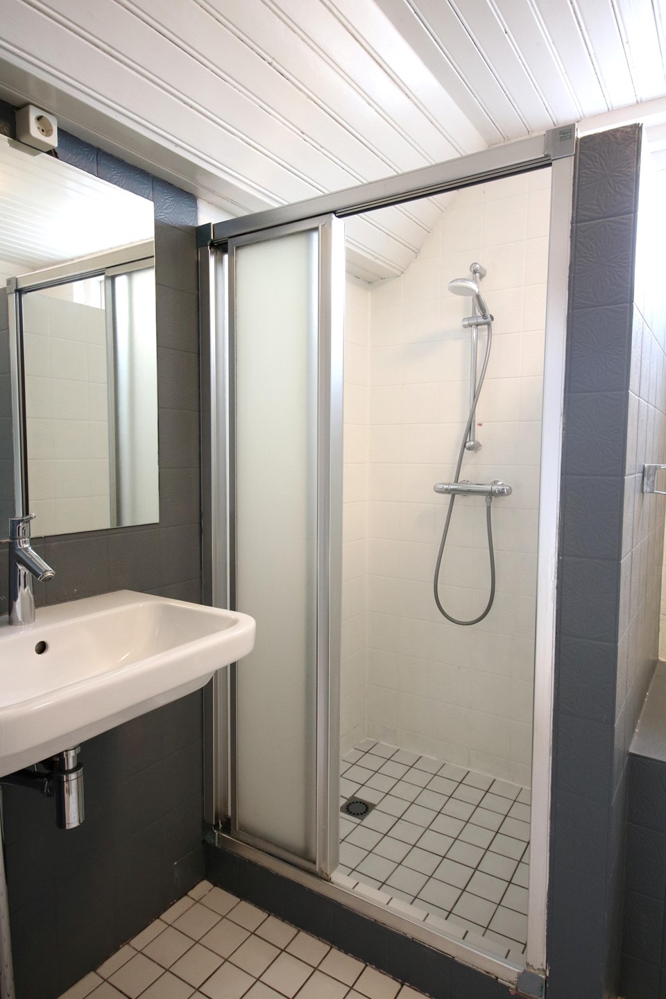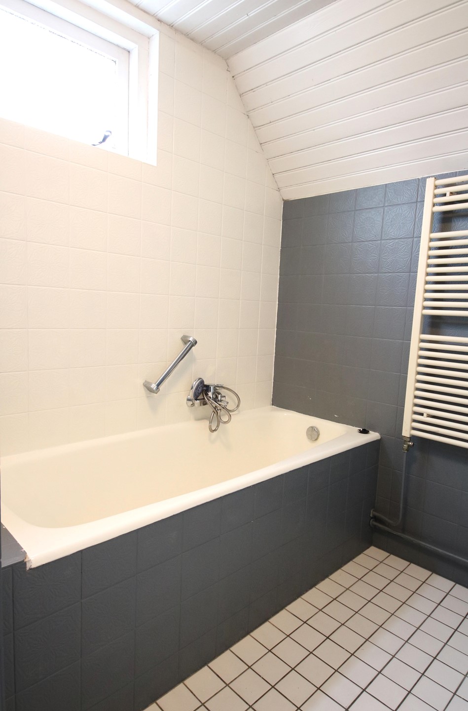 Via de trap, in de hal, kom je op de eerste verdieping, met aan de linkerkant de ruime badkamer, voorzien van ruime douchekabine, wasbak, ligbad en toilet.