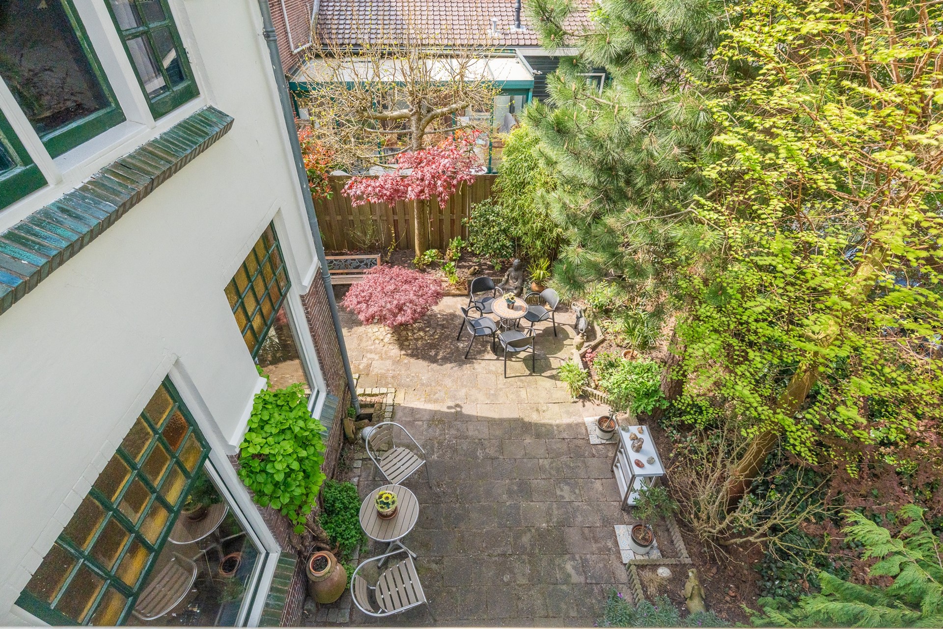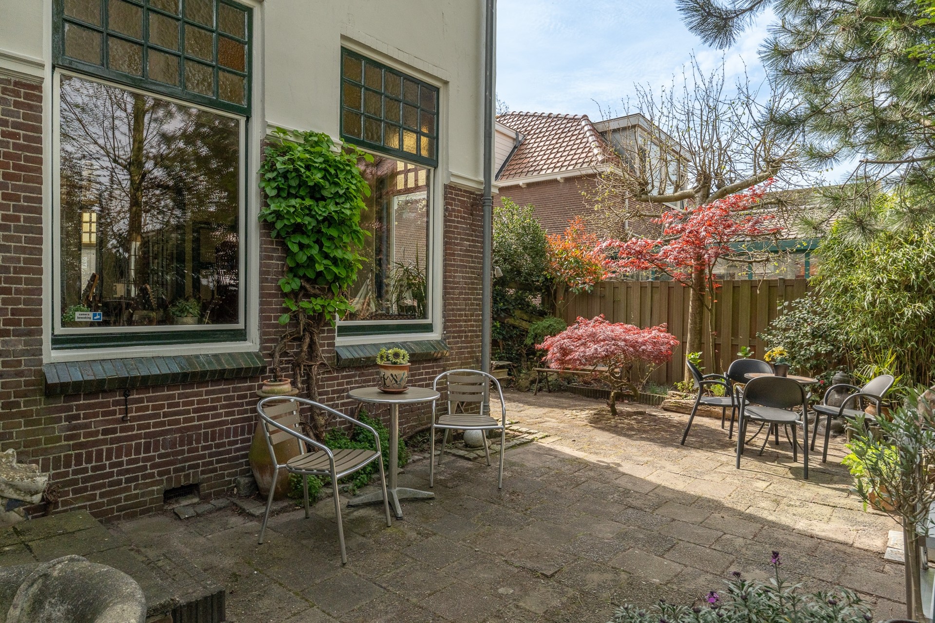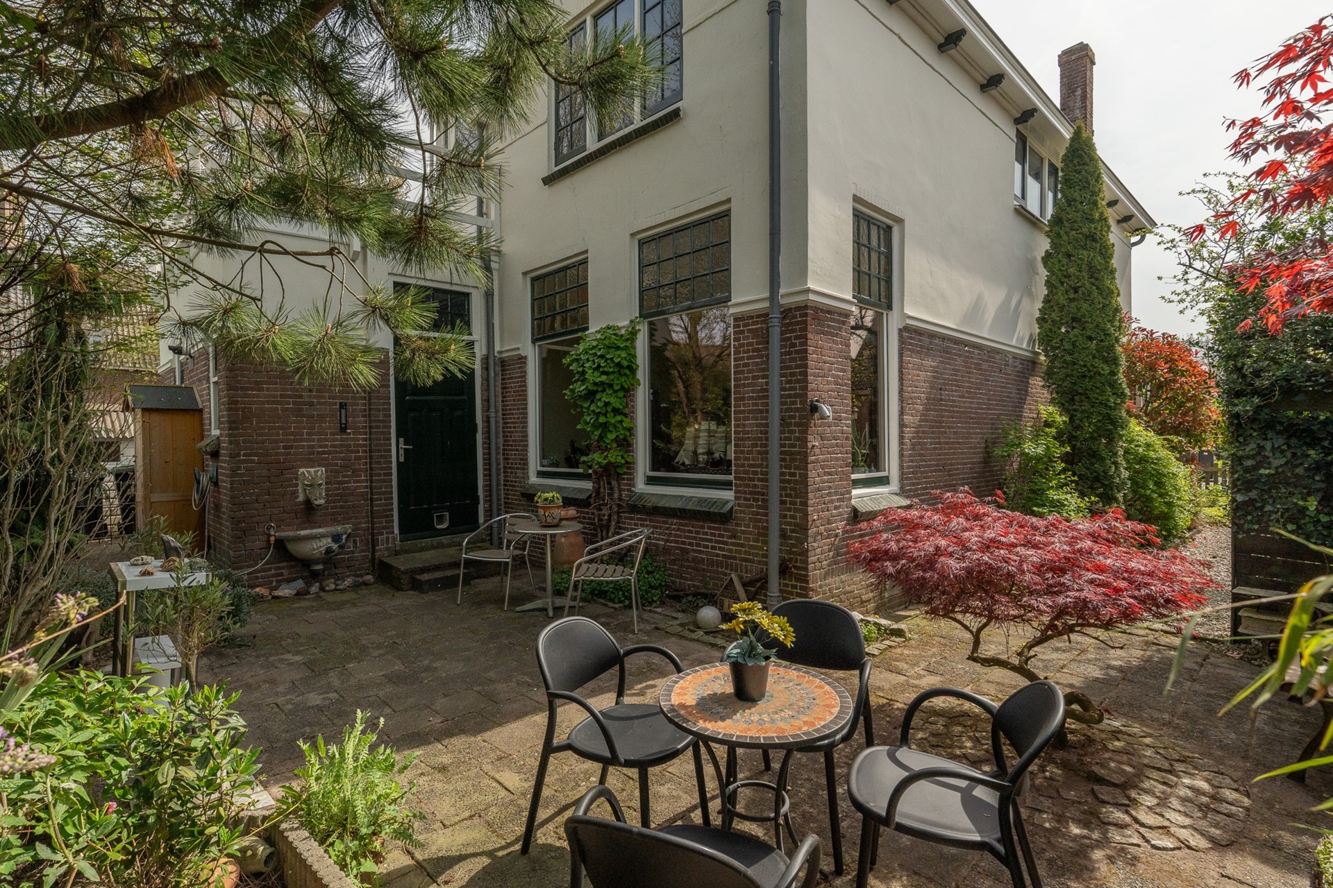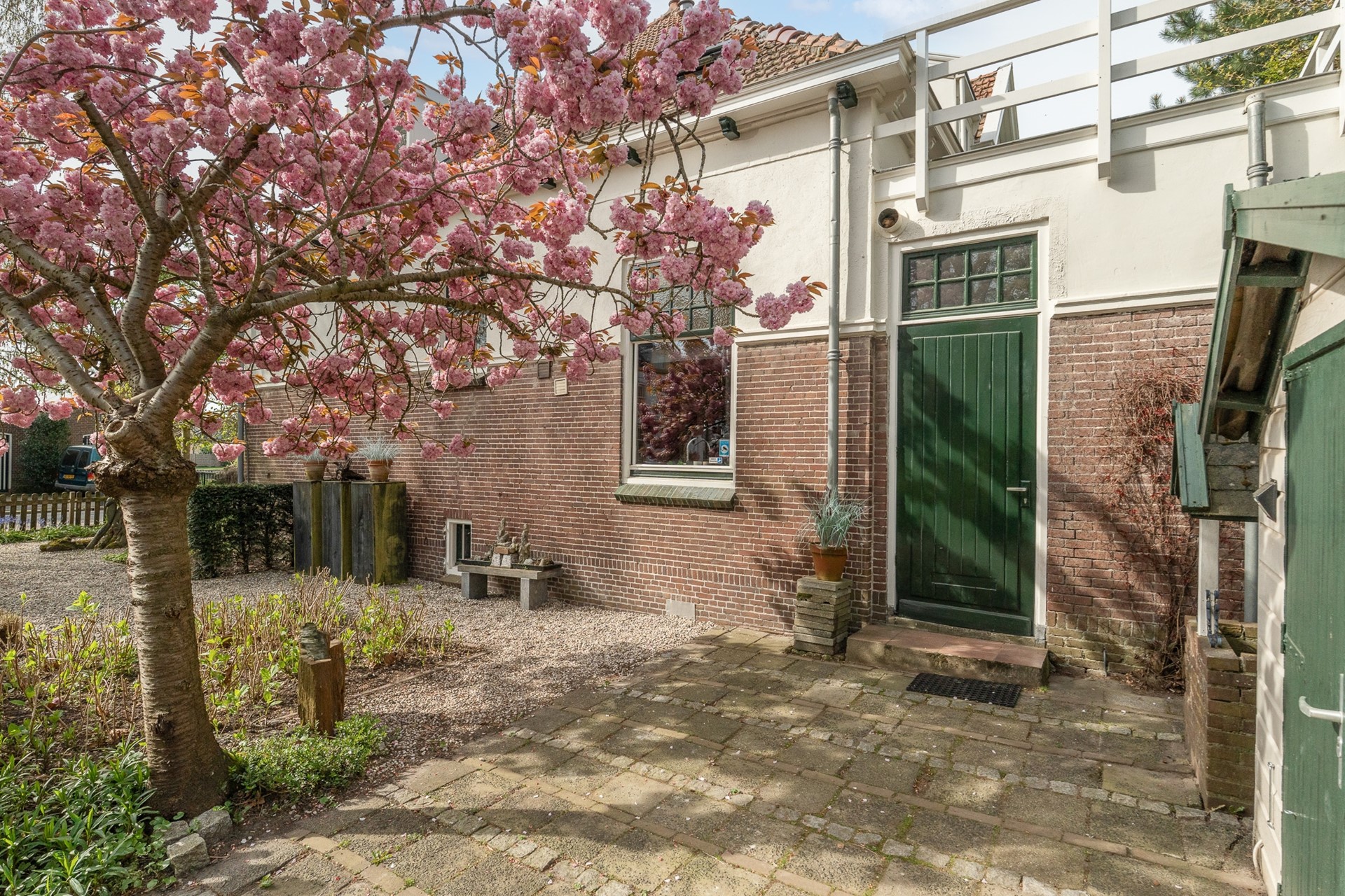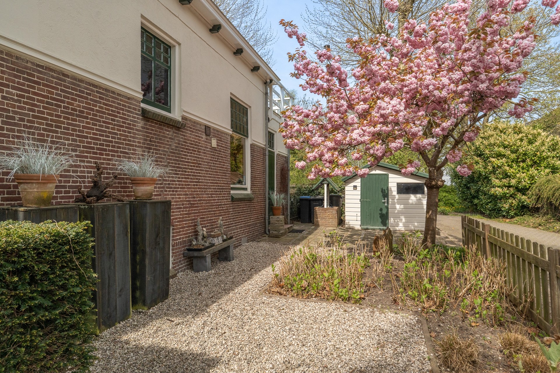 De tuin rondom het huis maakt het geheel echt af. Of je nu van zon of schaduw houdt, er is op elk moment van de dag een fijne plek te vinden. Bij de schuur is een parkeerplek op eigen terrein. De huidige eigenaar kiest er echter voor om op het openbare parkeerterrein direct achter de tuin te parkeren; dit is voor eigenaar en bezoekers een prima plek vlakbij de woning.