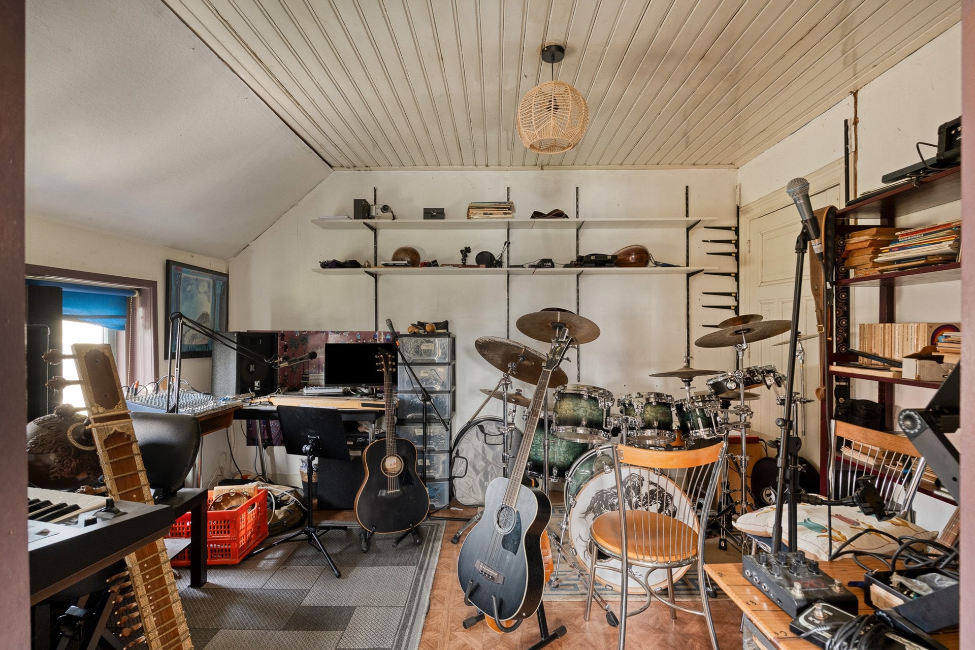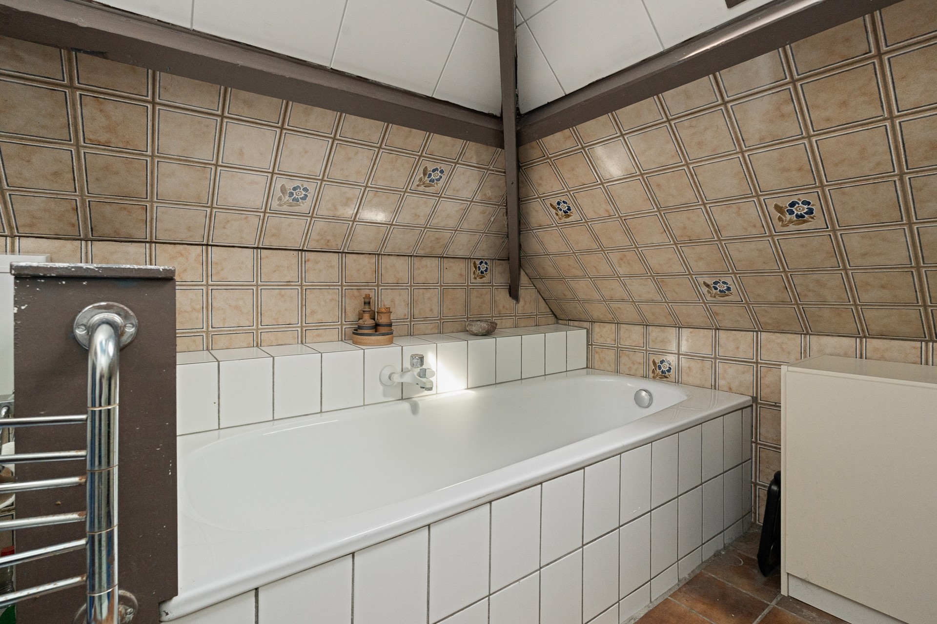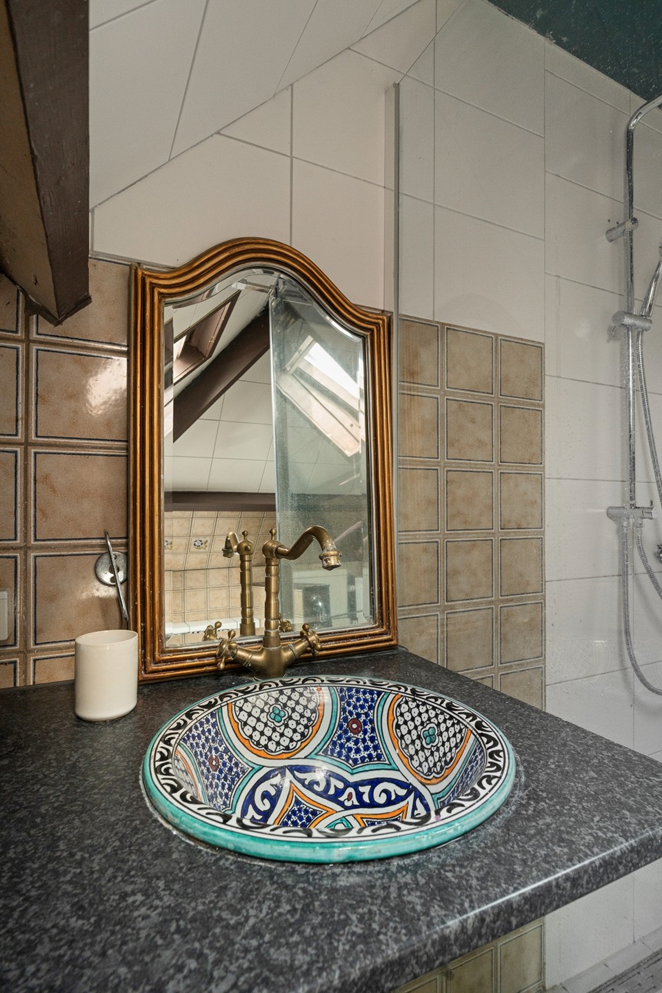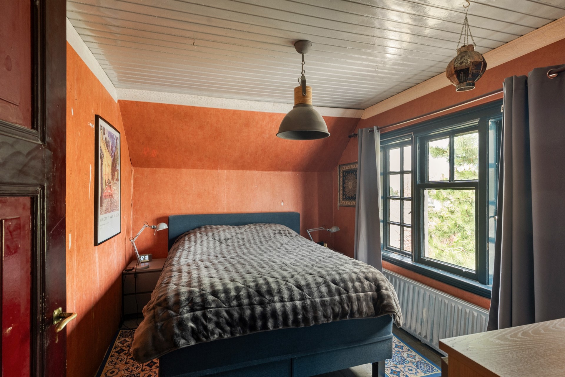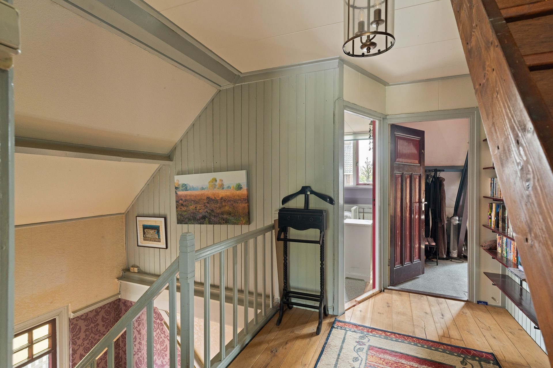 Via de trap bereik je de eerste verdieping, waar maar liefst 4 slaapkamers liggen. Ook hier vallen het licht, de ruimte en de warme sfeer meteen op. De badkamer heeft alle moderne gemakken (toilet, douche, apart ligbad en veel licht door het grote dakraam), terwijl qua stijl de tijd heeft stilgestaan. Via de vaste trap is de vliering goed toegankelijk. Het is een flinke ruimte voor extra opslag. Deze is middels een dakkapel ook in gebruik te nemen als extra slaap- of werkruimte.