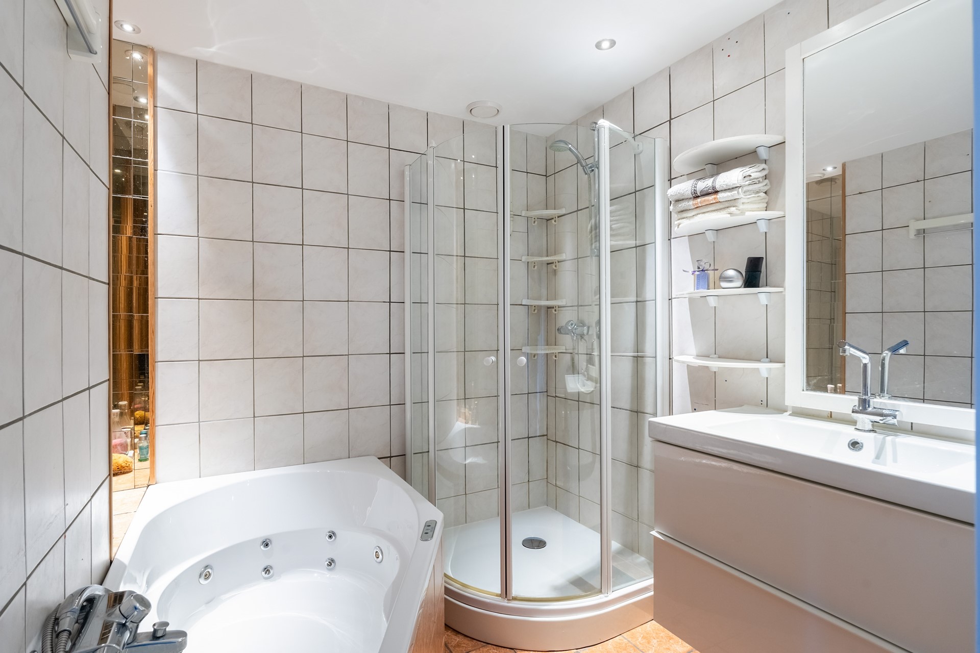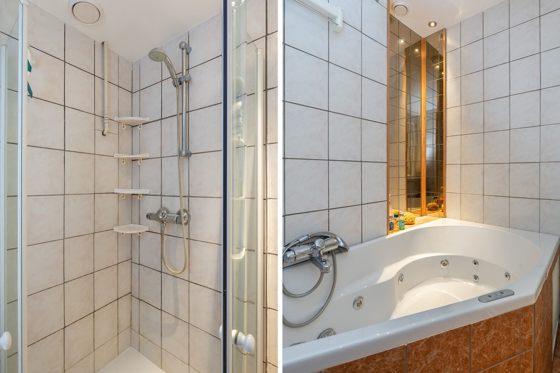 Het appartement beschikt over twee slaapkamers, waarvan de kleinere ook goed te gebruiken is als kantoor. De hoofdslaapkamer is uitgerust met een vaste garderobekast. In de gang bevinden zich tevens vaste inbouwkasten voor extra opbergruimte. De ruime badkamer is voorzien van een douchecabine, wastafelmeubel en jacuzzi. Daarnaast is er een separaat toilet en een aparte bergruimte met boiler en wasmachineopstelling.