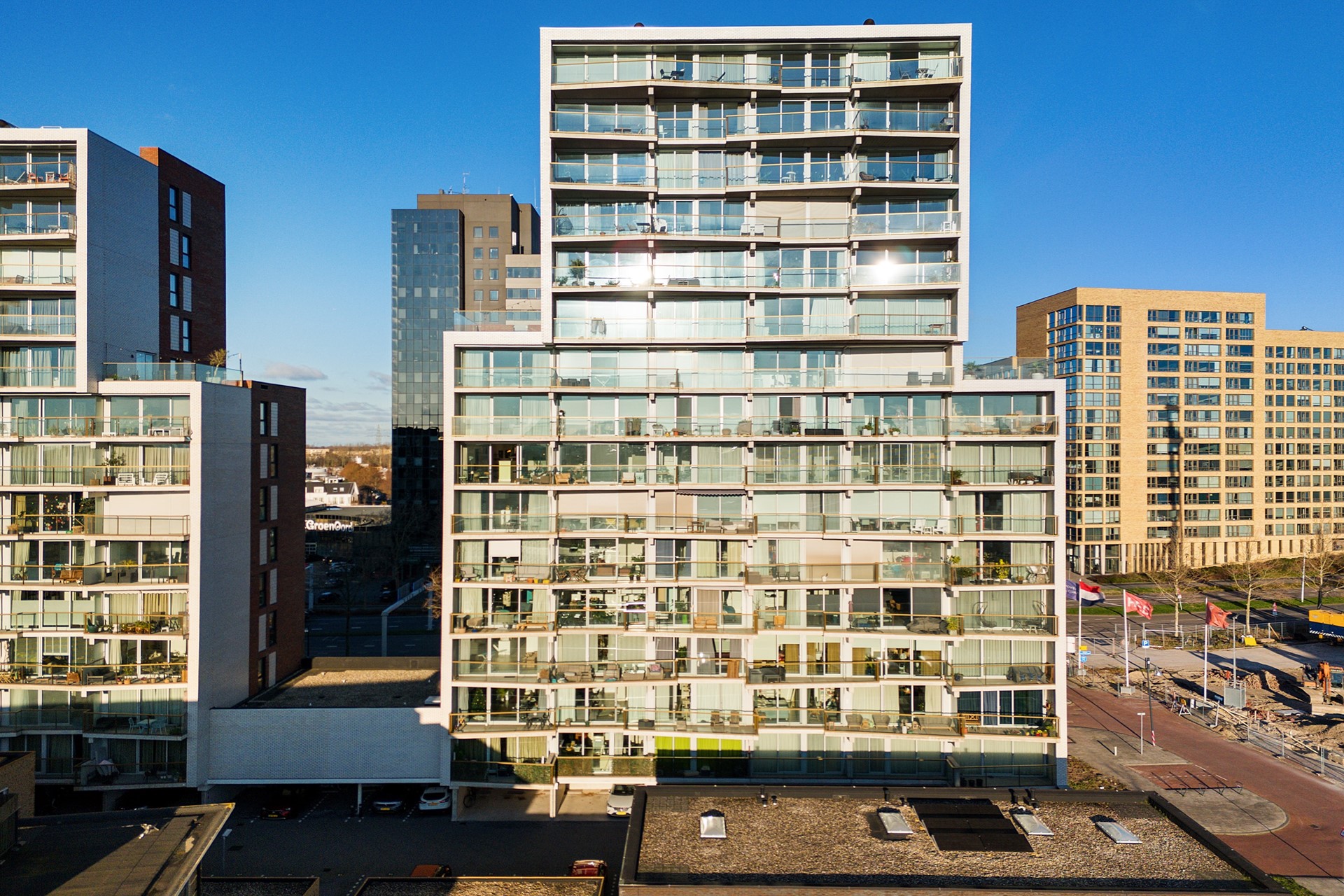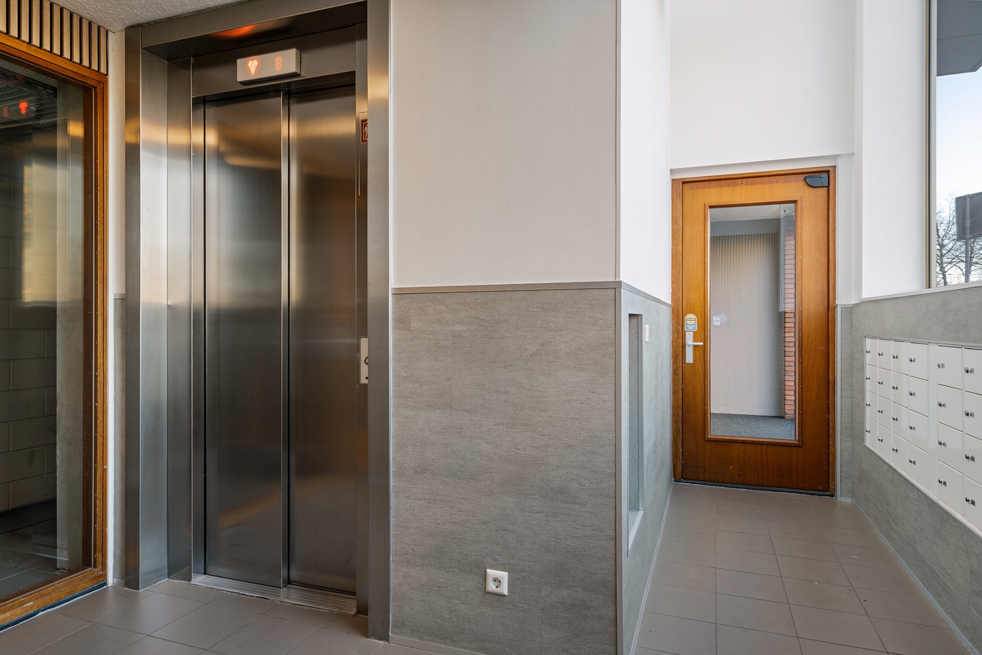 Begane grond: Het complex wordt betreden middels een nette, gemeenschappelijke entree, waar je onder ander de bellentableaus en brievenbussen vindt. Vanuit de gemeenschappelijke entree heb je direct toegang tot je eigen (fietsen)berging en tot je eigen overdekte parkeerplek, die zich op het afgesloten buitenterrein bevindt. Daarnaast beschikt het complex over een gemeenschappelijke fietsenberging. Teruggekomen in de ontvangsthal, kun je de lift of de trap nemen naar de 7de etage.