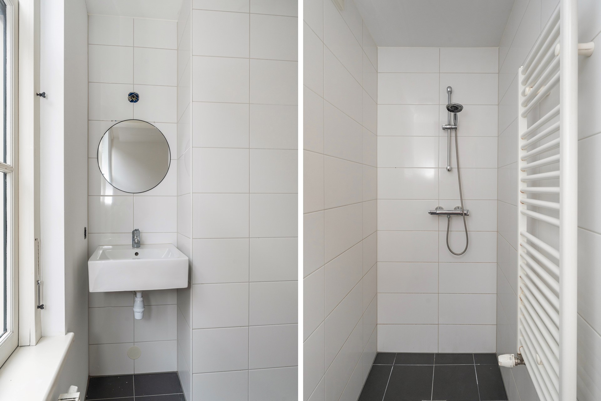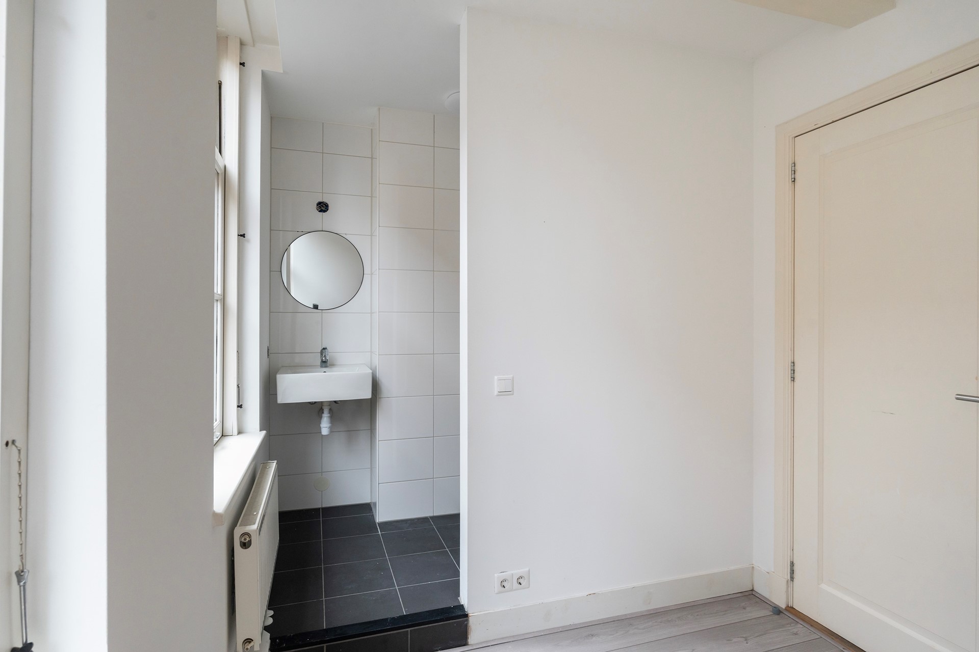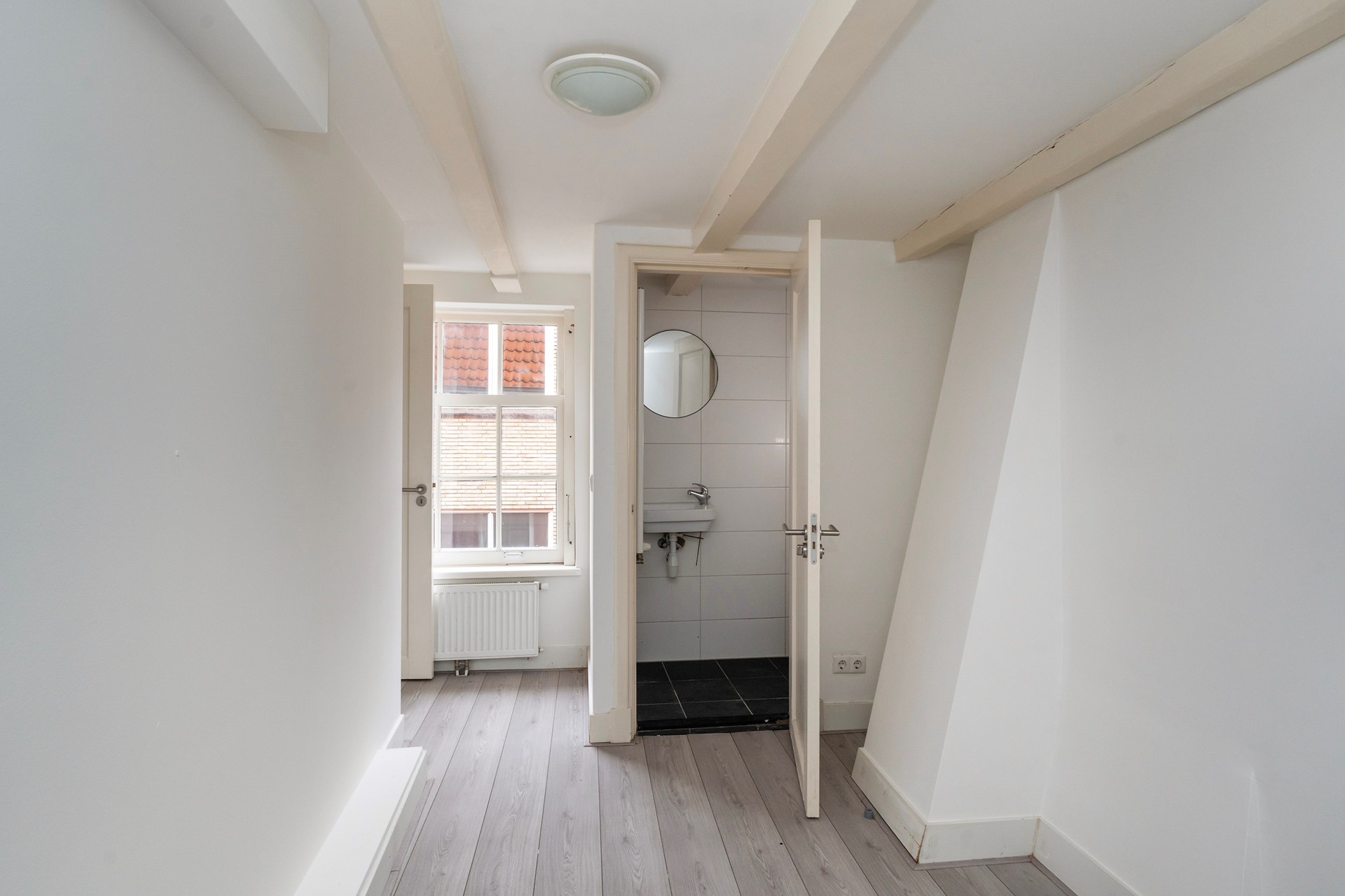 Het appartement bevindt zich in een rijksmonument, dat bestaat uit drie gesplitste appartementen. Via de trap kom je terecht op de eerste verdieping, waar je aan je rechterhand het appartement vindt. Wanneer je het appartement betreedt, vind je aan de rechterkant een separate toilet. Daarnaast bevindt zich een (slaap)kamer met een opstapje naar de eerste badkamer. Deze badkamer is voorzien van een fonteintje, spiegel, inloopdouche en handdoekradiator. Terug naar de hal, waar je aan de linkerkant nog een separate toilet vindt. Naast dit toilet vind je de woonkamer met open keuken, gelegen op het zuidwesten. De keuken is voorzien van standaard inbouwapparatuur. In de woonkamer vind je tevens een ruime inloopkast, die goed gebruikt kan worden voor het opslaan van boodschappen.