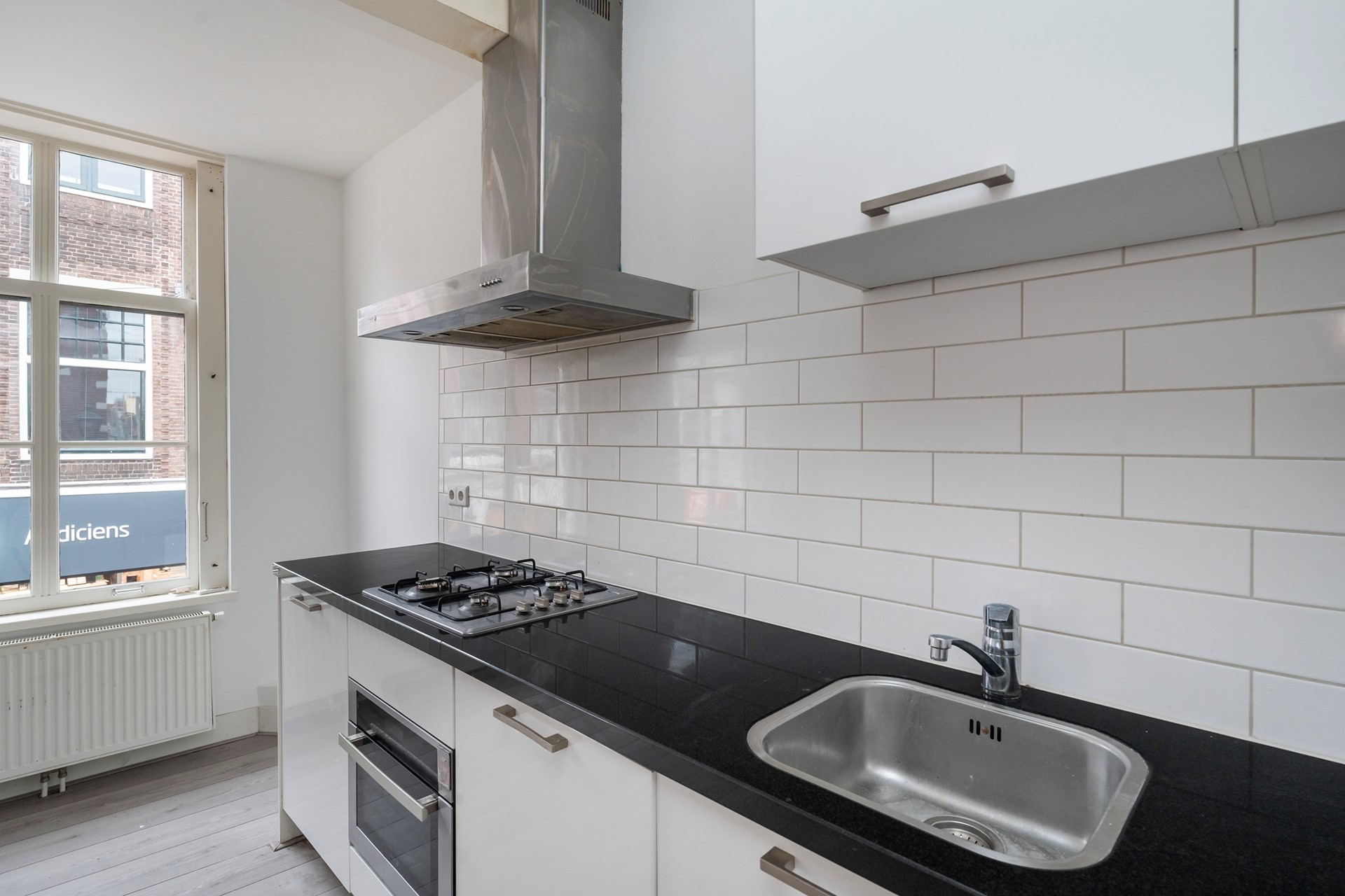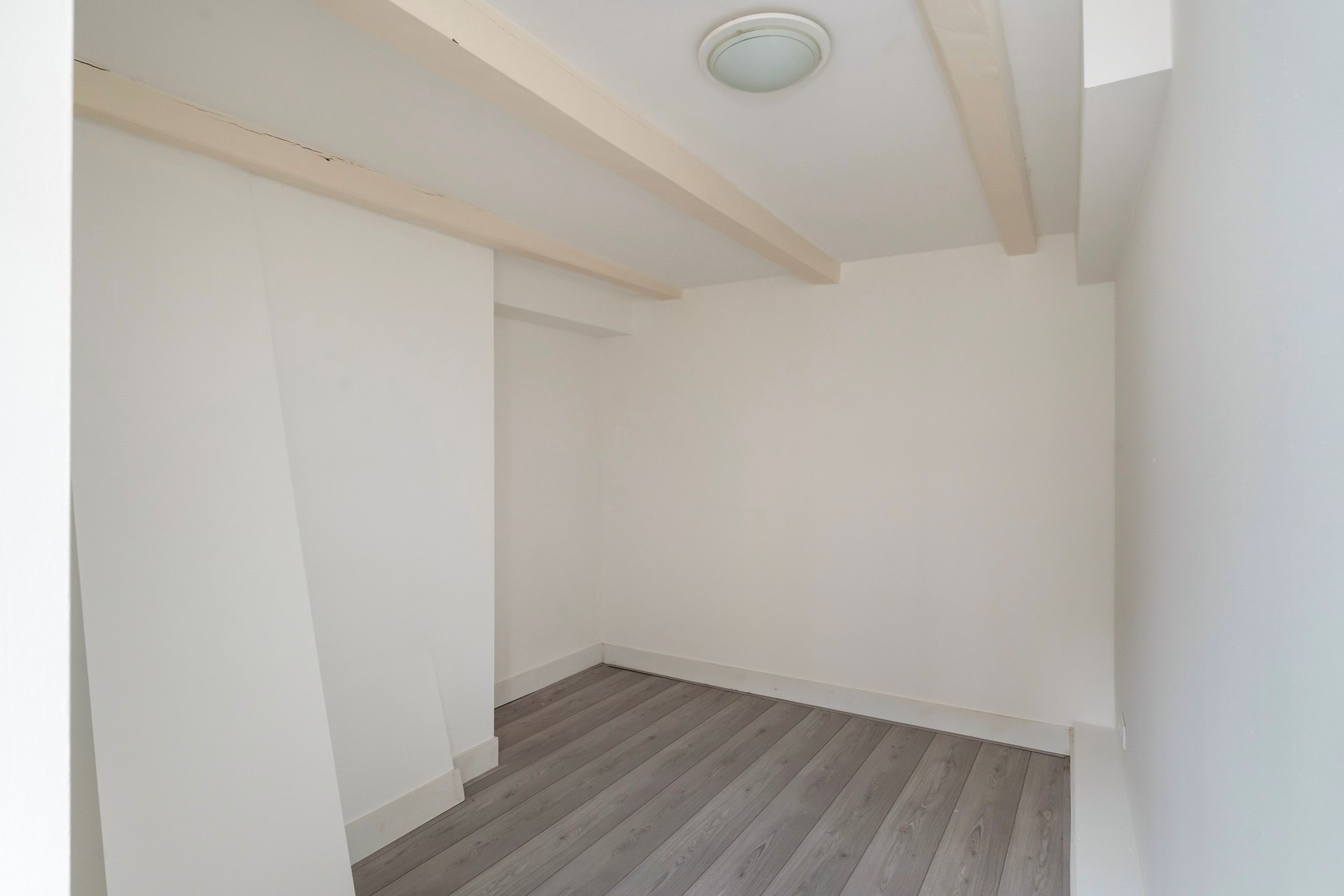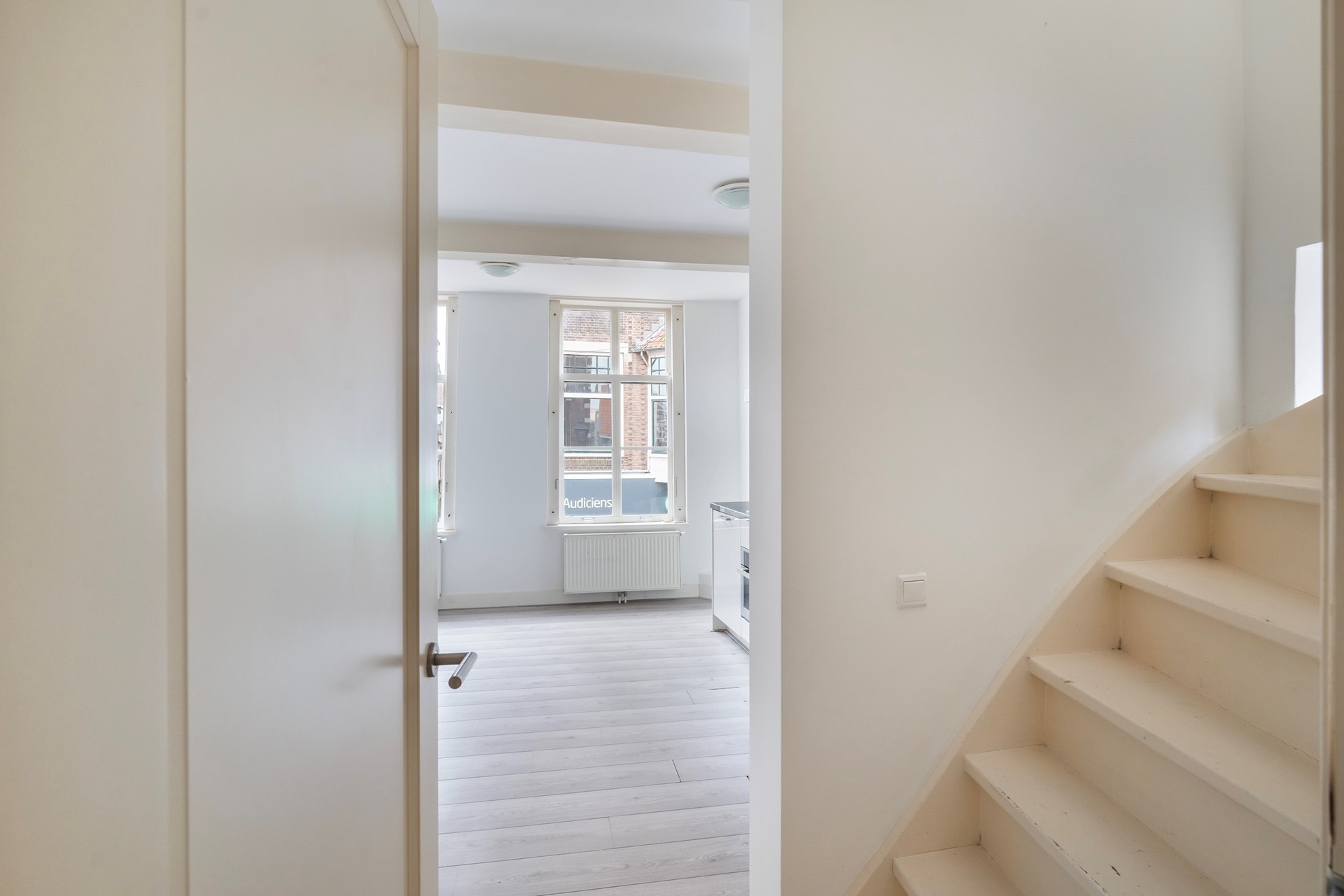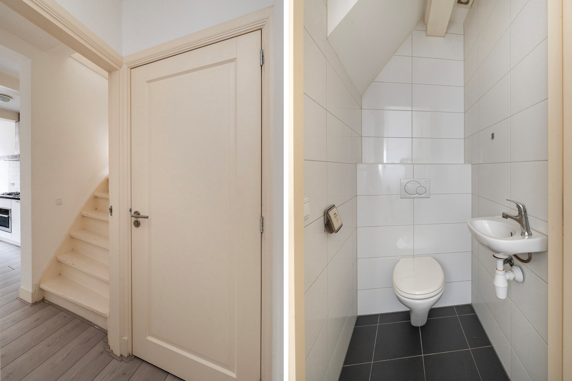 Het appartement bevindt zich in een rijksmonument, dat bestaat uit drie gesplitste appartementen. Via de trap kom je terecht op de eerste verdieping, waar je aan je rechterhand het appartement vindt. Wanneer je het appartement betreedt, vind je aan de rechterkant een separate toilet. Daarnaast bevindt zich een (slaap)kamer met een opstapje naar de eerste badkamer. Deze badkamer is voorzien van een fonteintje, spiegel, inloopdouche en handdoekradiator. Terug naar de hal, waar je aan de linkerkant nog een separate toilet vindt. Naast dit toilet vind je de woonkamer met open keuken, gelegen op het zuidwesten. De keuken is voorzien van standaard inbouwapparatuur. In de woonkamer vind je tevens een ruime inloopkast, die goed gebruikt kan worden voor het opslaan van boodschappen.