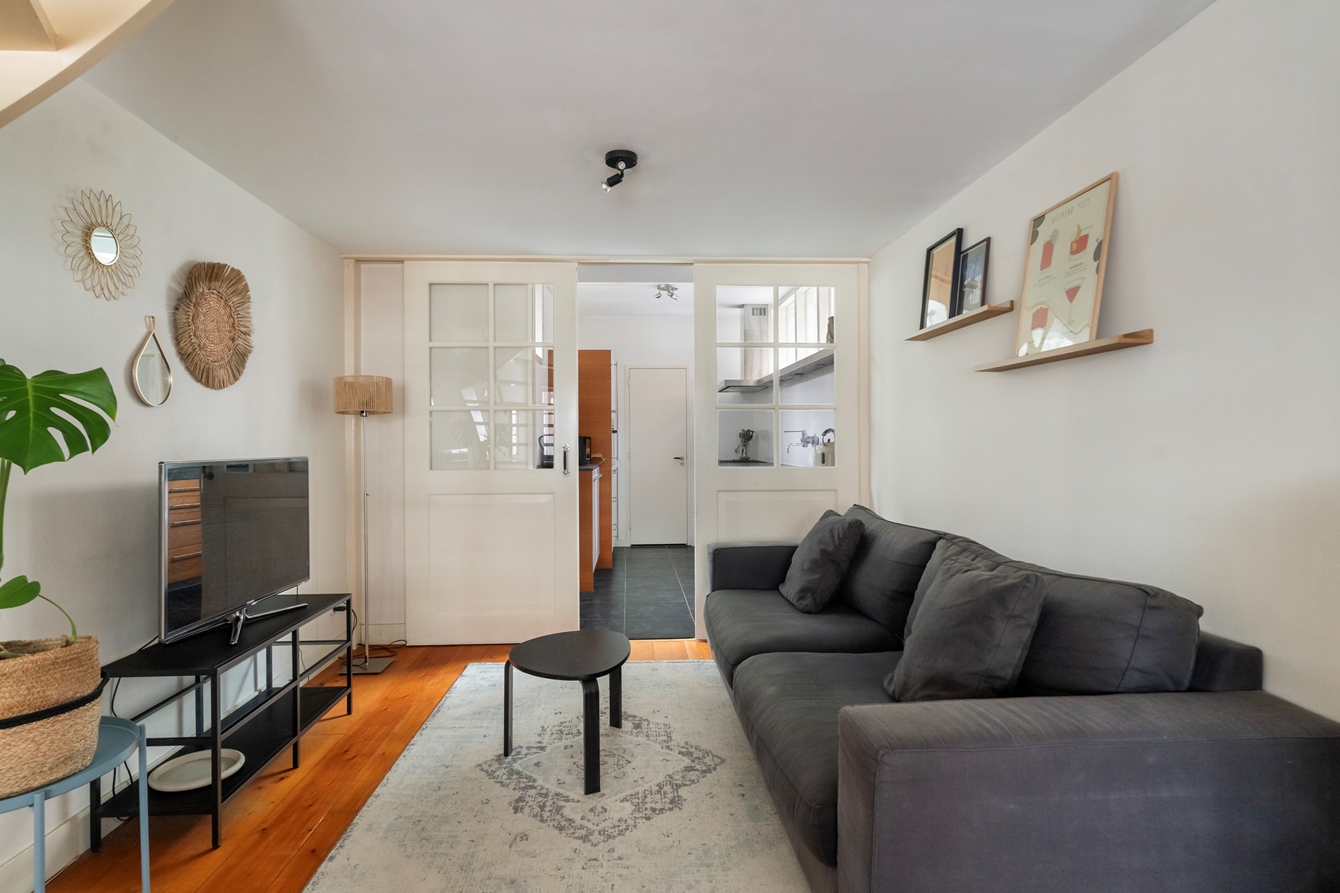 De begane grond heeft een winkelpui met daarachter een hal/ voorkamer die afgeschermd is met de woonkamer middels een fraai portaal (prachtig klassiek kozijn met roedeverdeling). Deze 'voorkamer' is ideaal aangezien hier o.a. de fietsen gestald kunnen worden plus dat de eerste 'kou' buiten de woonkamer gehouden kan worden. Kenmerkend voor de woonkamer is dat het een hele lichte ruimte is. Er is heel nuttig gebruik gemaakt van het vele licht dat aan de achterzijde (zuid) via de keuken naar binnen komt. Hierdoor wordt de woonkamer zowel vanuit de voorzijde als achterzijde verlicht. Wat een aangenaam gevoel geeft.