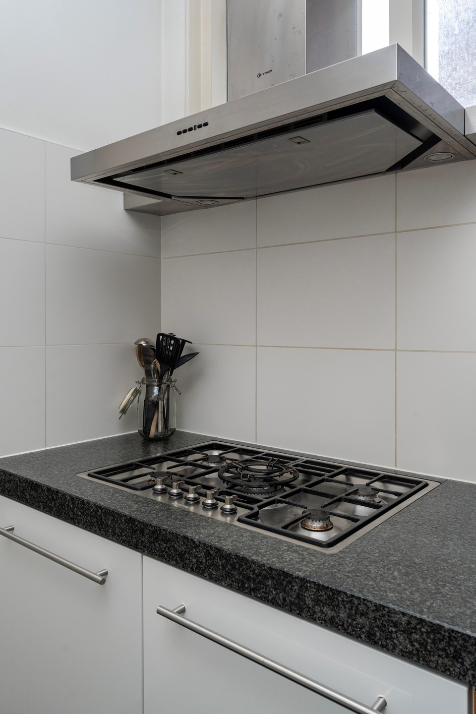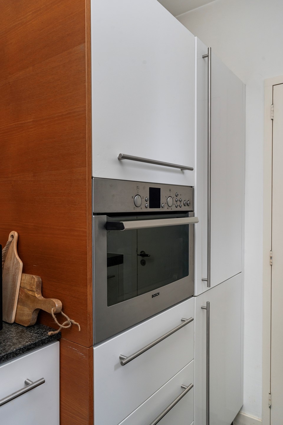 De ruime en sfeervolle woonkamer loopt over naar de keuken die weer afgescheiden kan worden door een tweetal grote deuren waarvan er 1 schuivend is. De keuken is een plaatje en mag gerust luxe genoemd worden. De echte kookliefhebber wordt hier blij van. Deze luxe keuken is in 2005 geplaatst met een natuurstenen aanrecht/ werkblad op extra hoogte en extra diepte voorzien van diverse hoogwaardige inbouwapparatuur w.o. een 5-pits SMEG kookplaat, Bosch r.v.s. combimagnetron, Bosch vaatwasmachine, koel-/vriescombinatie, zeer veel kastruimte & elektrische vloerverwarming. Altijd lekker! Aansluitend bevindt zich aan de achterzijde van de keuken de toiletruimte met mechanische ventilatie & een wasmachine- en drogeraansluiting.