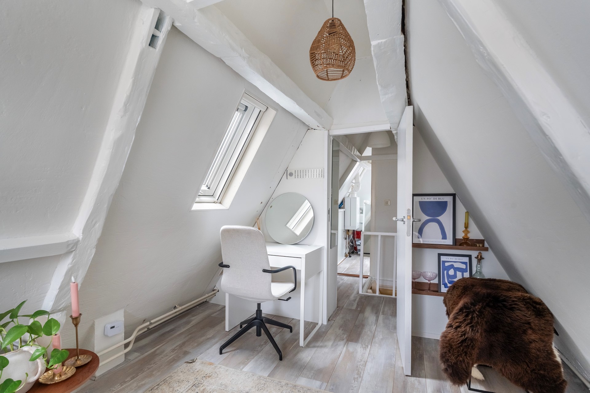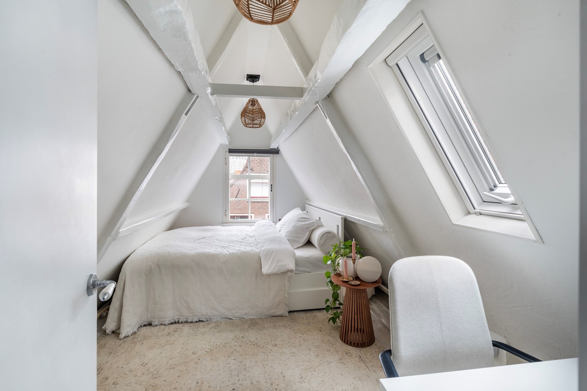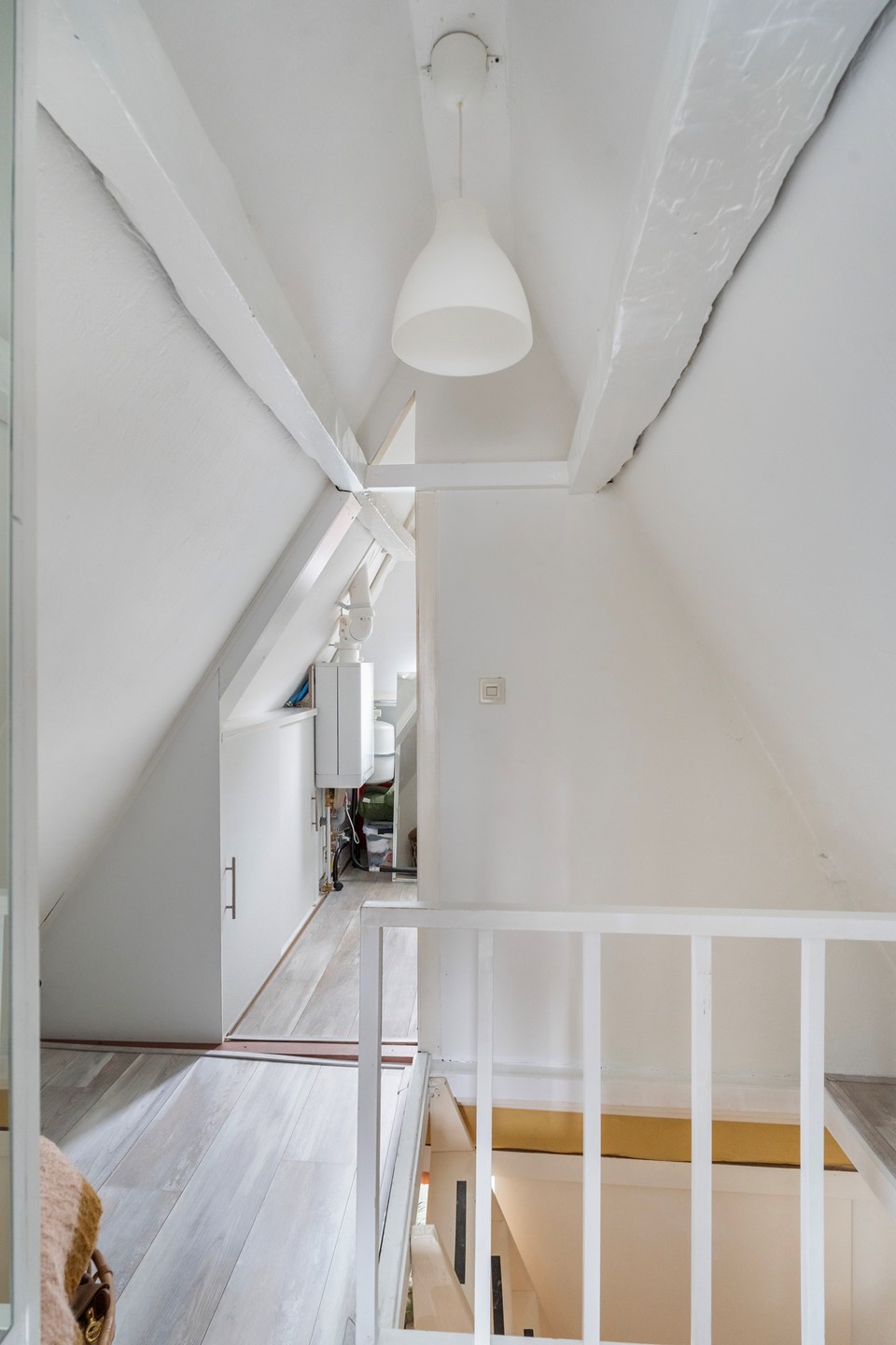 Via een vaste 'steek'trap is er toegang tot de sfeervolle slaapzolder. De prachtige kapconstructie met originele spanten is nog zichtbaar. Deze zolderverdieping is ook ingericht als slaapvertrek en heeft de beschikking over een groot raam aan de voorzijde, een Velux dakraam op het zijvlak en ook op het dak aan de achterzijde. De vernieuwde CV-ketel bevindt zich ook op deze etage & er is een royale inloop kledingkast met veel bergruimte aangebracht aan de achterzijde. U merkt het al: Wij zijn heel enthousiast over dit zeer leuke en sfeervolle wevershuis! U ook? U bent van harte welkom.