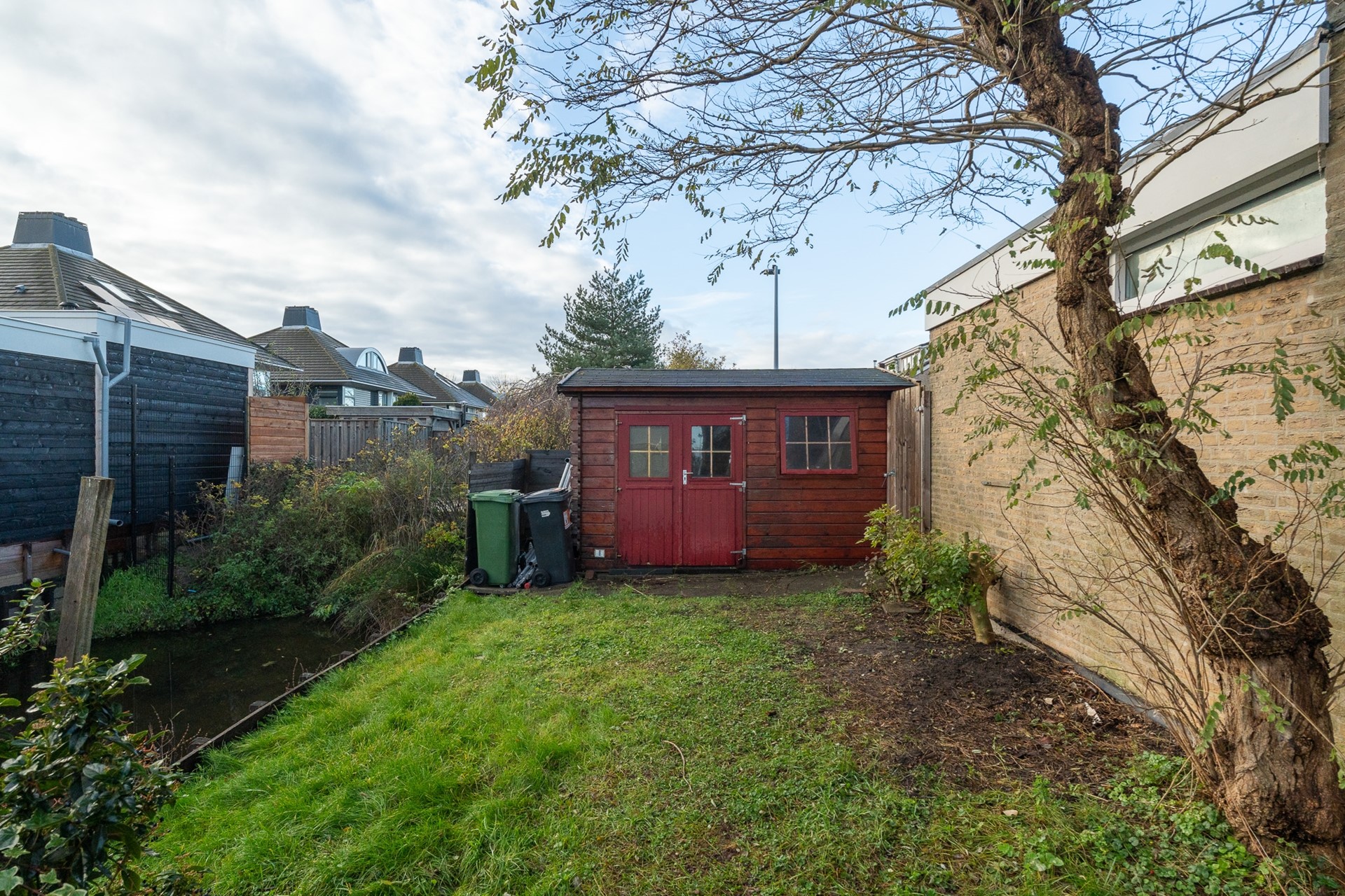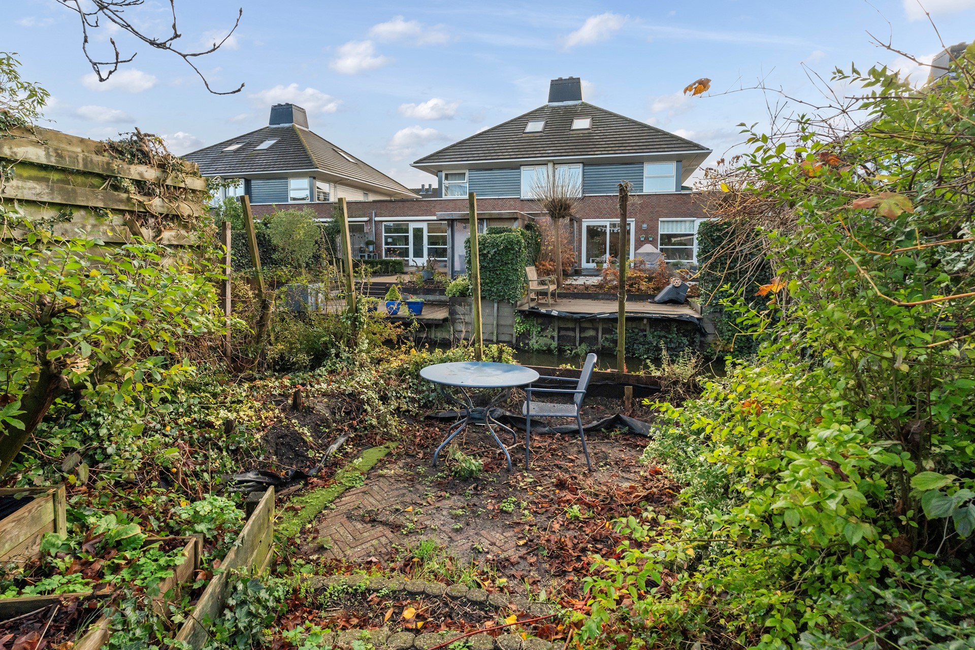 De woning beschikt aan de voorkant over een eigen oprit met parkeergelegenheid voor 1 auto. Je vindt hier de voordeur, de toegang tot de inpandige berging en de poort naar de zij- en achtertuin. Wanneer je de woning betreedt via de voordeur, kom je terecht in de hal die toegang biedt tot alle vertrekken. Zo vind je hier de toegang tot het toilet en tot de L-vormige woonkamer, de trap naar de eerste etage, de toegang tot de ruime interne berigng en de meterkast ( voorzien van een driefase aansluiting). De inpandige berging is goed geïsoleerd en wordt momenteel gebruikt als kantoor. De berging is verder voorzien van de wasmachine- en drogeraansluiting, paneelomvormer (maart 2025) en thuisbatterij (juni 2024) voor zonne-energie, een functionele airco en meer dan voldoende ruimte voor het opslaan van boodschappen, etc. De thuisbatterij gaat in principe mee met de verkopers, maar kan in overleg worden overgenomen. Via de L-vormige woonkamer heb je toegang tot de halfopen keuken, voorzien van een 6-pits gasfornuis met 2 ovens, afzuigkap, close-in boiler en kastruimte. Via de achterdeur betreed je de serre met afsluitbare deuren, die in 2021 is geplaatst. De serre is gelegen op het noorden, wat betekent dat je al vroeg in het voorjaar en in de zomer heerlijk kunt genieten van de ochtendzon. Vanuit de serre heb je toegang tot de ruime zij- en achtertuin, die zijn gelegen aan een watertje. Tevens vind je in de zijtuin een vrijstaand schuurtje, voorzien van elektra.